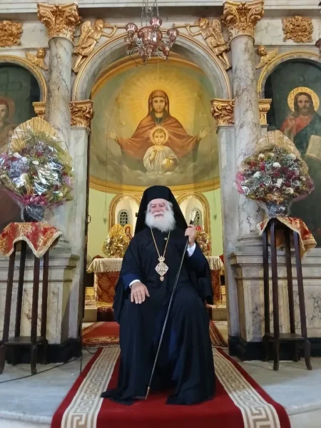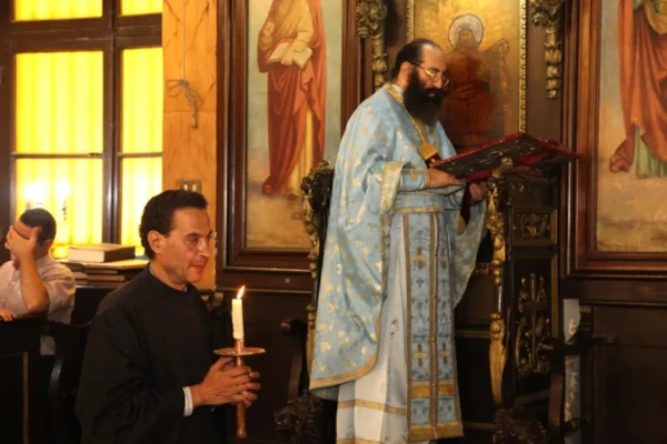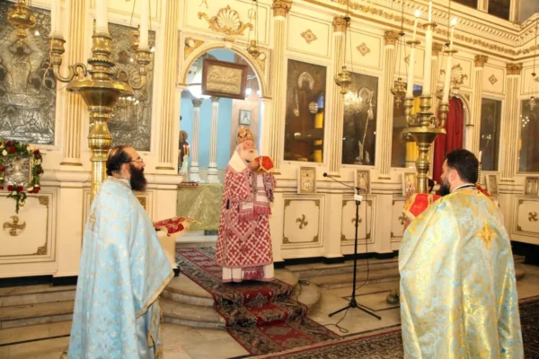 Εν όψει της μεγάλης Θεομητορικής εορτής της Κοιμήσεως της Θεοτόκου ο Μακαριώτατος Πάπας και Πατριάρχης Αλεξανδρείας και πάσης Αφρικής κ.κ. Θεόδωρος Β΄ ιερούργησε την Κυριακή 10 Αυγούστου 2025, στον ιστορικό Ιερό Ναό Κοιμήσεως της Θεοτόκου Αλεξανδρείας, πλαισιούμενος από τον Πανοσιολογιώτατο Αρχιμανδρίτη π. Δαμασκηνό, Πατριαρχικό Επίτροπο Αλεξανδρείας και τον Πανοσιολογιώτατο Αρχιμανδρίτη π. Σάββα, εφημέριο του ως άνω Ιερού Ναού.