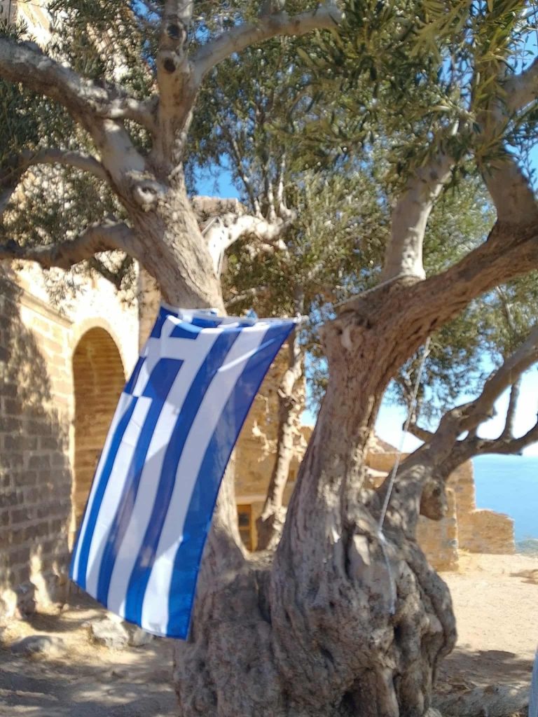 Επιπλέον, ανέφερε ότι στις 23 Ιουλίου 1821, κατά την παράδοση των κλειδιών του κάστρου από τους Οθωμανούς στον Αλέξανδρο Καντακουζηνό, πληρεξούσιο του Δημήτριου Υψηλάντη και πρώην αξιωματικό του ρωσικού στρατού, η ελιά «άκουσε» την καμπάνα του ναού του Ελκόμενου Χριστού, να αναγγέλλει το χαρμόσυνο μήνυμα της ελευθερίας, ενώ ακολούθως, «είδε» τους Έλληνες οπλαρχηγούς, να συγκεντρώνονται κάτω από την σκιά της και να υψώνουν την ελληνική σημαία στα τείχη, δίπλα στις τυφεκιοθυρίδες, με τον εγκαταλελειμμένο οπλισμό των Οθωμανών.