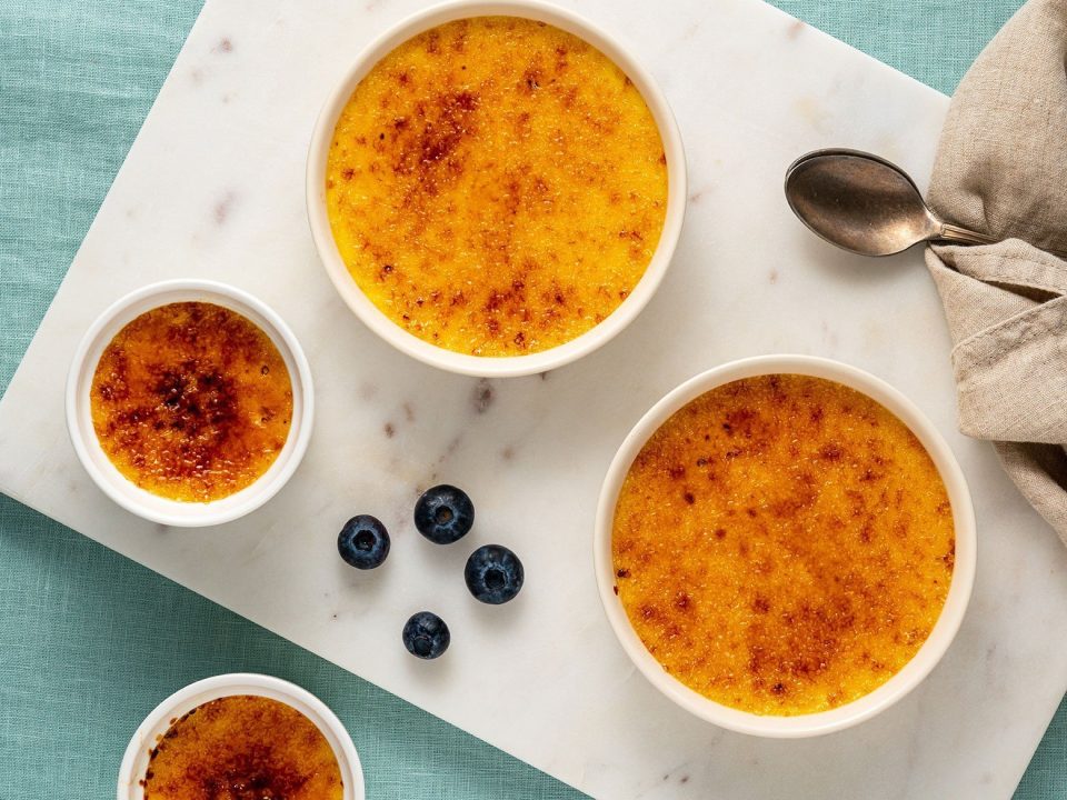 Πριν να σερβίρετε πασπαλίζετε με μια κουταλιά ζάχαρη στο καθένα καραμελώνεται από πάνω με φλόγιστρο ή τοποθετείτε στο γκριλ ψηλά στο φούρνο στους 200οC μέχρι να καραμελώσει.