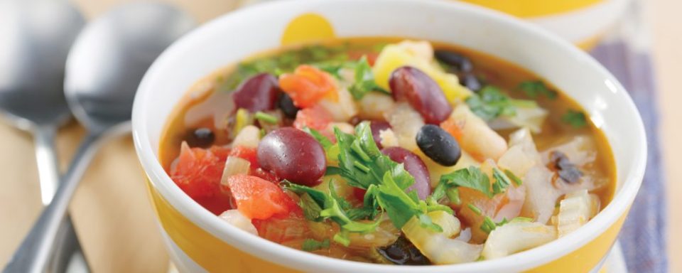 Μια πιο ενδιαφέρουσα εκδοχή της ένδοξης ελληνικής φασολάδας που θα γεμίσει το πιάτο σας με χρώμα και γεύση. Σερβίρετε το φαγητό σε ατομικά πιάτα και πασπαλίζετε με φρέσκο ψιλοκομμένο μαϊντανό. Βάζετε στο πλάι ελαιόλαδο και λεμόνι και προσθέτει ο καθένας όση ποσότητα επιθυμεί.