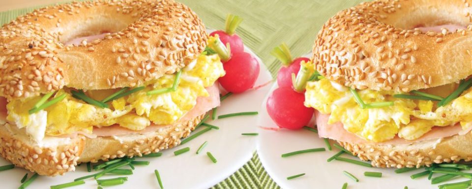 Χαράζετε το κουλούρι στη μέση, απλώνετε μια φέτα ζαμπόν πάνω στο μισό κουλούρι, προσθέτετε το αβγό και κλείνετε από πάνω με το άλλο μισό κουλούρι.