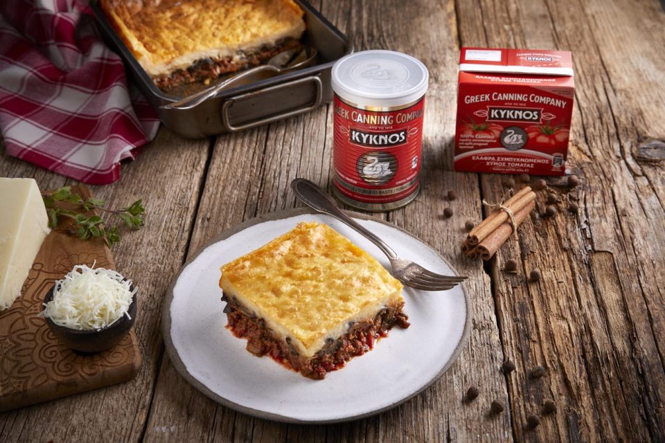 Ξεκινάμε τσιγαρίζοντας αρχικά τον κιμά και στην συνέχεια προσθέτουμε τα ψιλοκομμένα κρεμμύδια. Σβήνουμε με κρασί. Μόλις εξατμιστεί το κρασί μας, σοτάρουμε τον Τοματοπολτό KYKNOS και προσθέτουμε πιπέρι, αλάτι, κανέλλα, δάφνη και ρίγανη. Αφαιρούμε το ξυλαράκι κανέλλας και το φύλλο δάφνης μετά από 5’. Προσθέτουμε τις Τριμμένες τομάτες KYKNOS και ζωμό λαχανικών. Για ένα ακόμα πιο υγιεινό και νόστιμο φαγητό, προσθέτουμε αν θέλουμε και τριμμένα λαχανικά, όπως καρότο και κολοκύθι. Στο τέλος προσθέτουμε τον μαϊντανό και μια κ.σ. μπεσαμέλ.