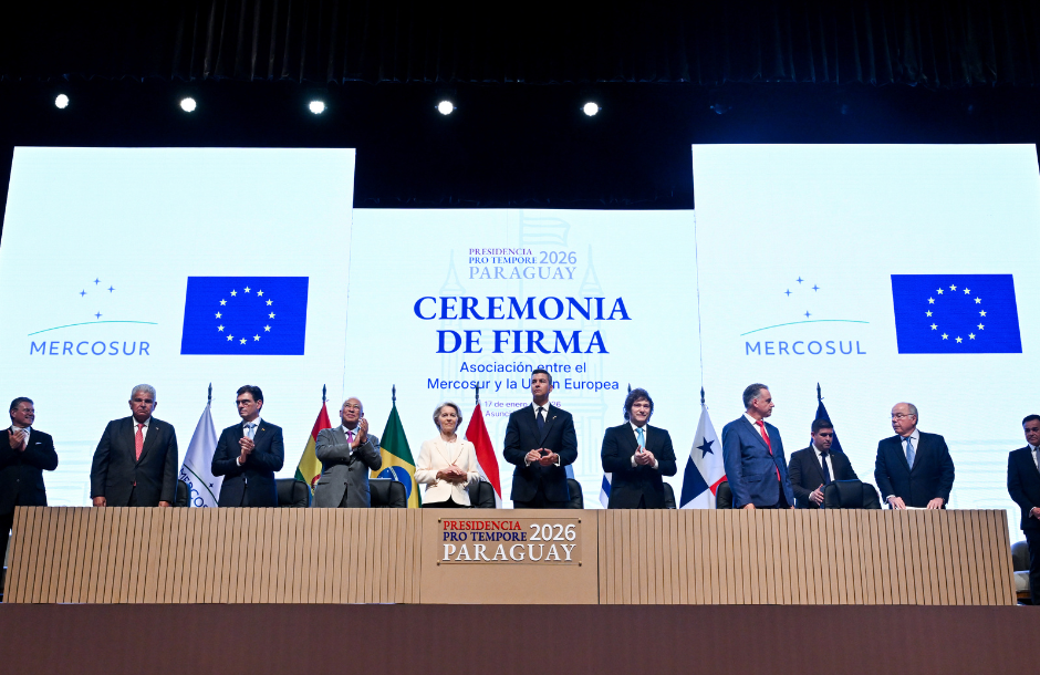 Η Πρόεδρος της Ευρωπαϊκής Επιτροπής, Ursula von der Leyen, ο Πρόεδρος του Ευρωπαϊκού Συμβουλίου, Antonio Costa, και ηγέτες από τις χώρες του Mercosur παρευρέθηκαν στην υπογραφή της συμφωνίας εταιρικής σχέσης ΕΕ-Mercosur (EMPA) και της προσωρινής εμπορικής συμφωνίας ΕΕ-Mercosur από τον Επίτροπο Εμπορίου της ΕΕ, Maroš Šefčovič, και τους ομολόγους του από τη Mercosur.
