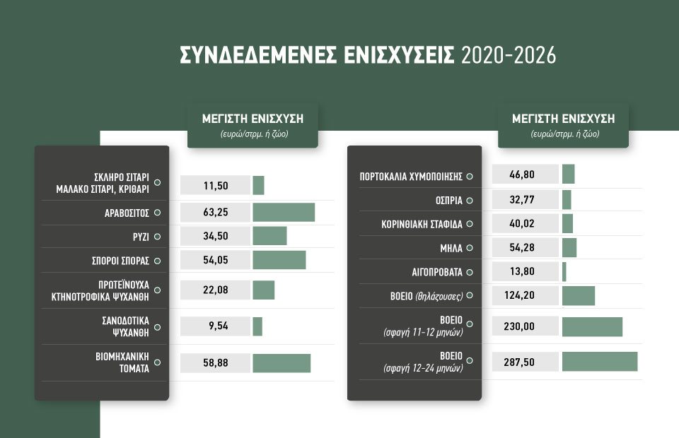Αναλυτικά ο νέος προϋπολογισµός των συνδεδεµένων ενισχύσεων:
