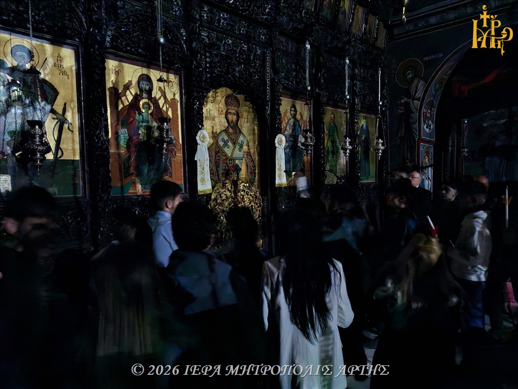 Το Μέγα Σάββατο, 11 Απριλίου 2026, το βράδυ, στον Μητροπολιτικό Ιερό Ναό του Αγίου Δημητρίου Άρτης, χοροστάτησε στον Όρθρο και ελειτούργησε ο Σεβασμιώτατος Μητροπολίτης Άρτης κ. Καλλίνικος.